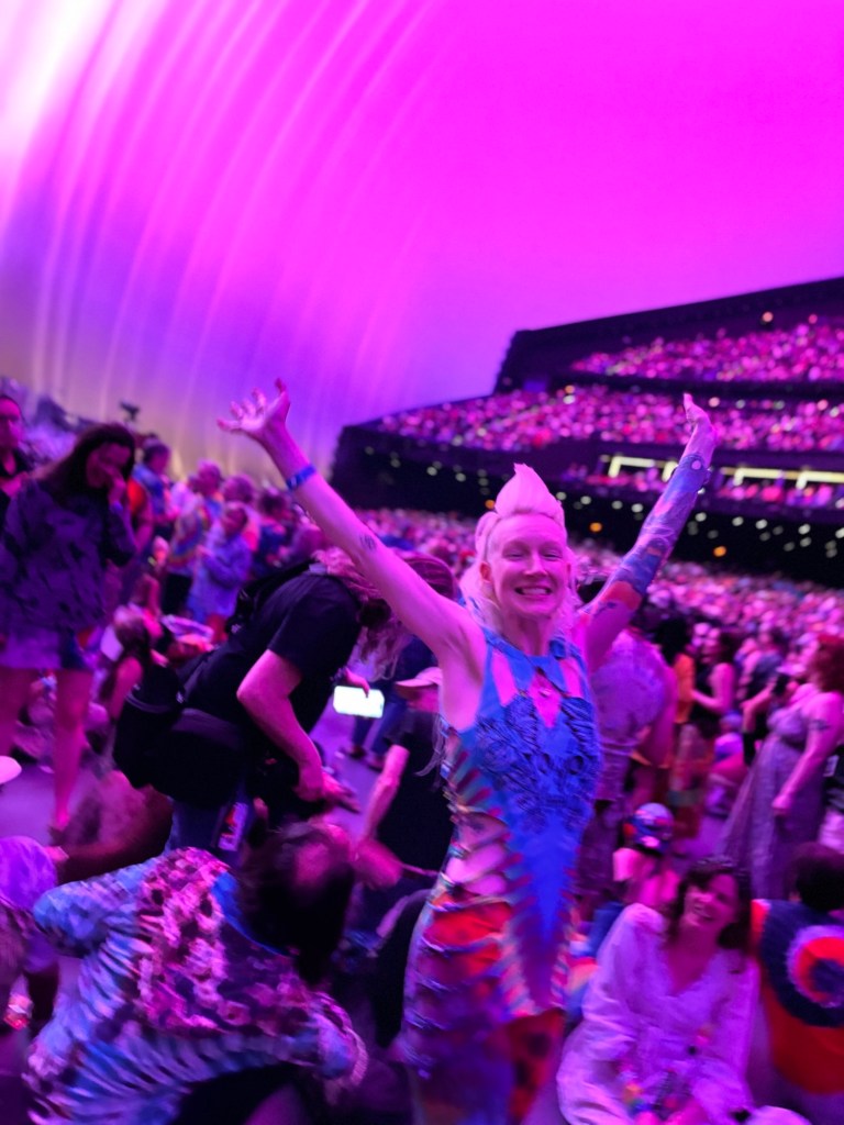 When the summer ended, I was more exhausted than I’d anticipated. I felt soul-tired from the intensity. I stood at the front with over 20,000 people behind me. I felt the energy of the crowd and the pulse of the music. The vibration ran through me. It was a profound experience, one I couldn’t walk away from unchanged. Reconnecting with Lisa, sharing those moments, and watching her build a beautiful life and relationship was transformative. Her friends became mine, and the bonds we created were gifts I’ll carry in my heart forever.